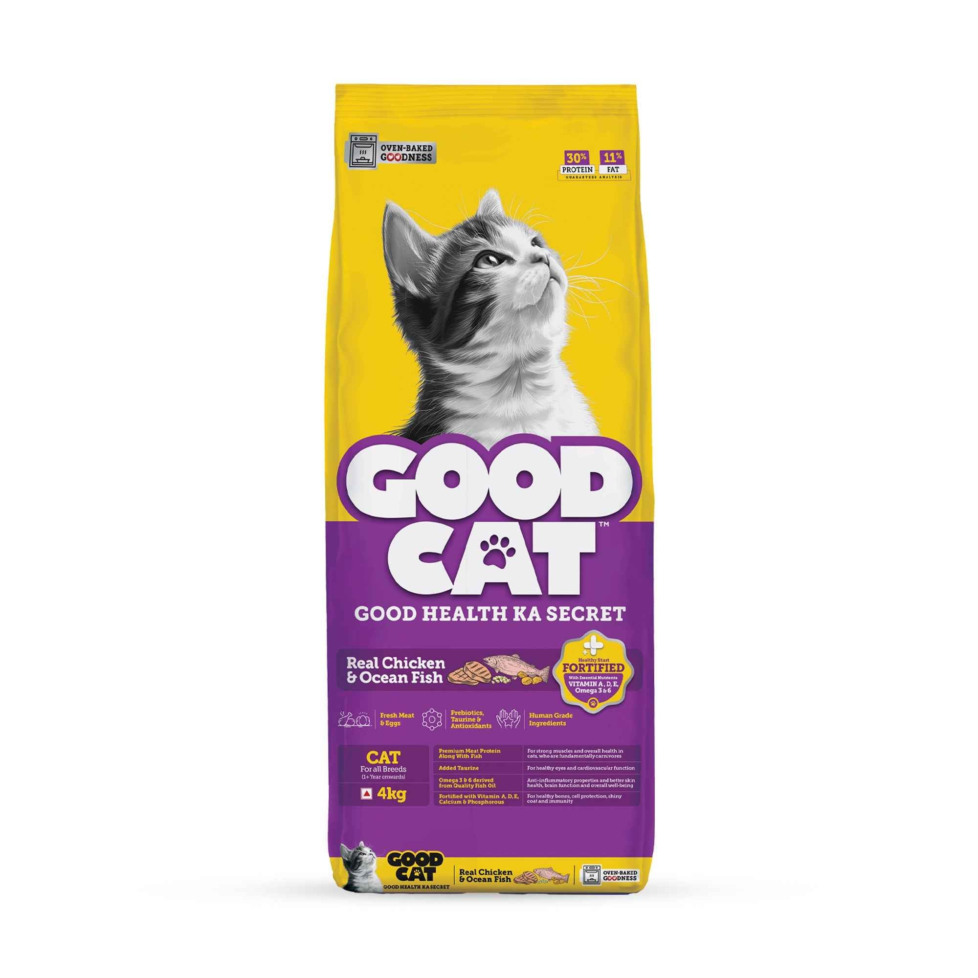 Cats can be picky. That’s why GOOD CAT™ is made to impress them — and you. Crafted with a high-protein blend of real meats like chicken, liver, and ocean fish, this kibble is oven-baked to lock in taste and nutrient integrity.